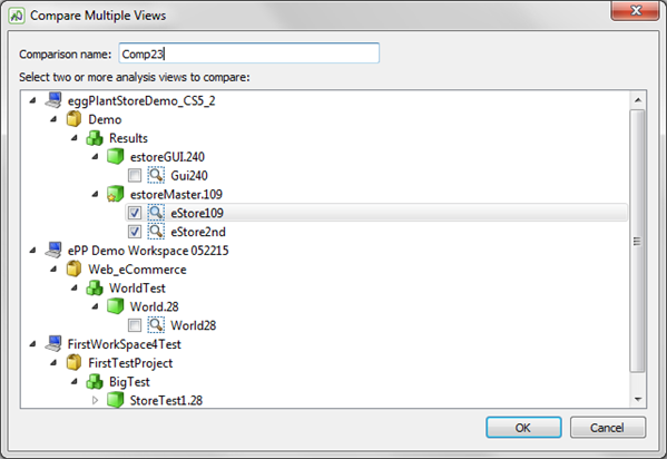 - When you have added all the analysis views you want to use for this comparison, click OK.