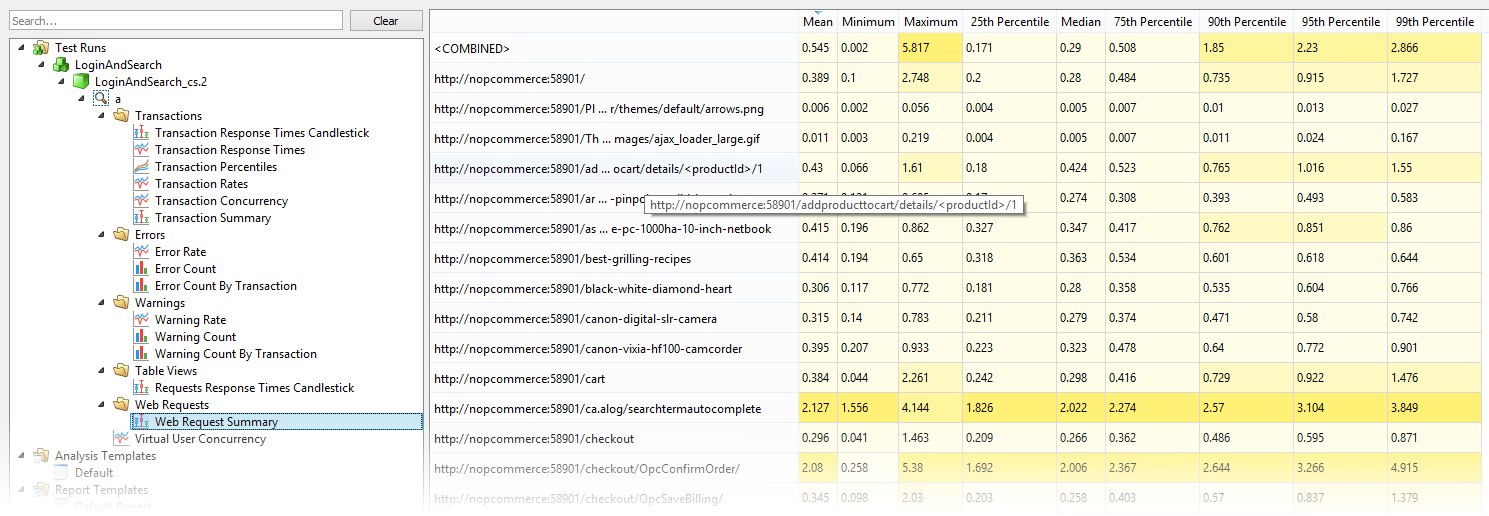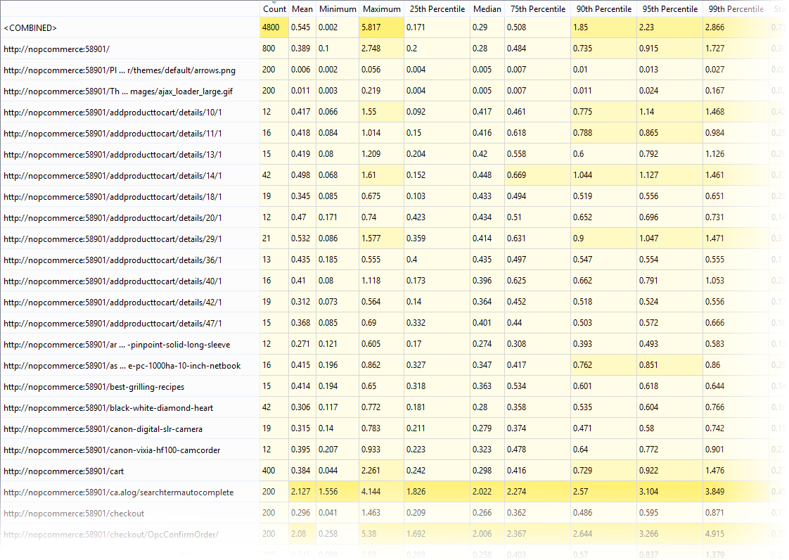 As far as the server is concerned, these requests are all functionally equivalent; the only difference is that there is a dynamic number in the URL. The number is a product ID for whatever was being added to the cart. Instead of seeing this request for each product ID encountered, you might want to have a single row representing the performance of that particular bit of functionality.