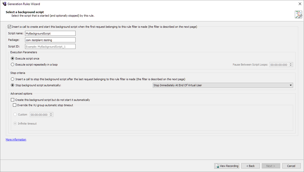 Script ID: The ID that can be used to refer to the background script within any scripts in the virtual user's (VU's) workflow.