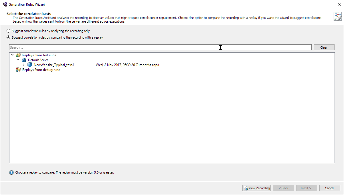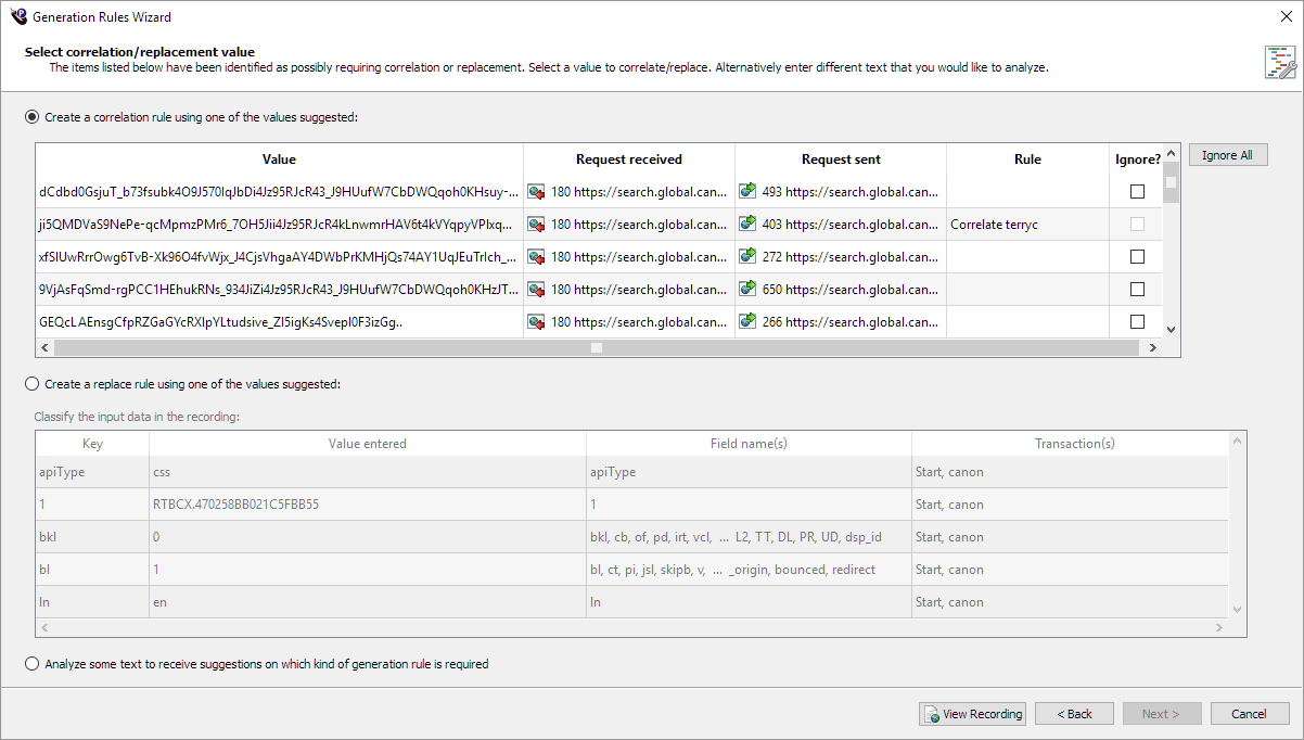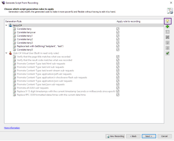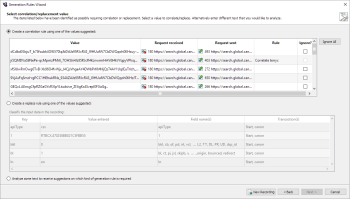 - Click Next and the Script Generation Rules wizard opens to the Select correlation/replacement value page.