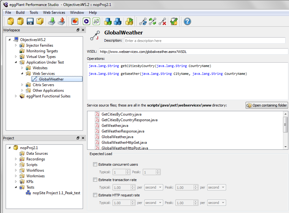 - For web services generated in Java, the wizard uses the Apache WSDL to Java (wsdl2java) tool. This tool is included with the Eggplant Performance Studio installation. You do not need to install it.