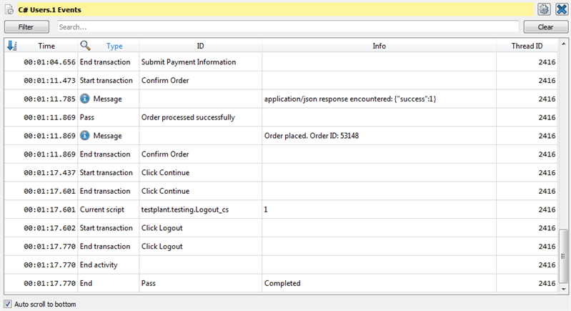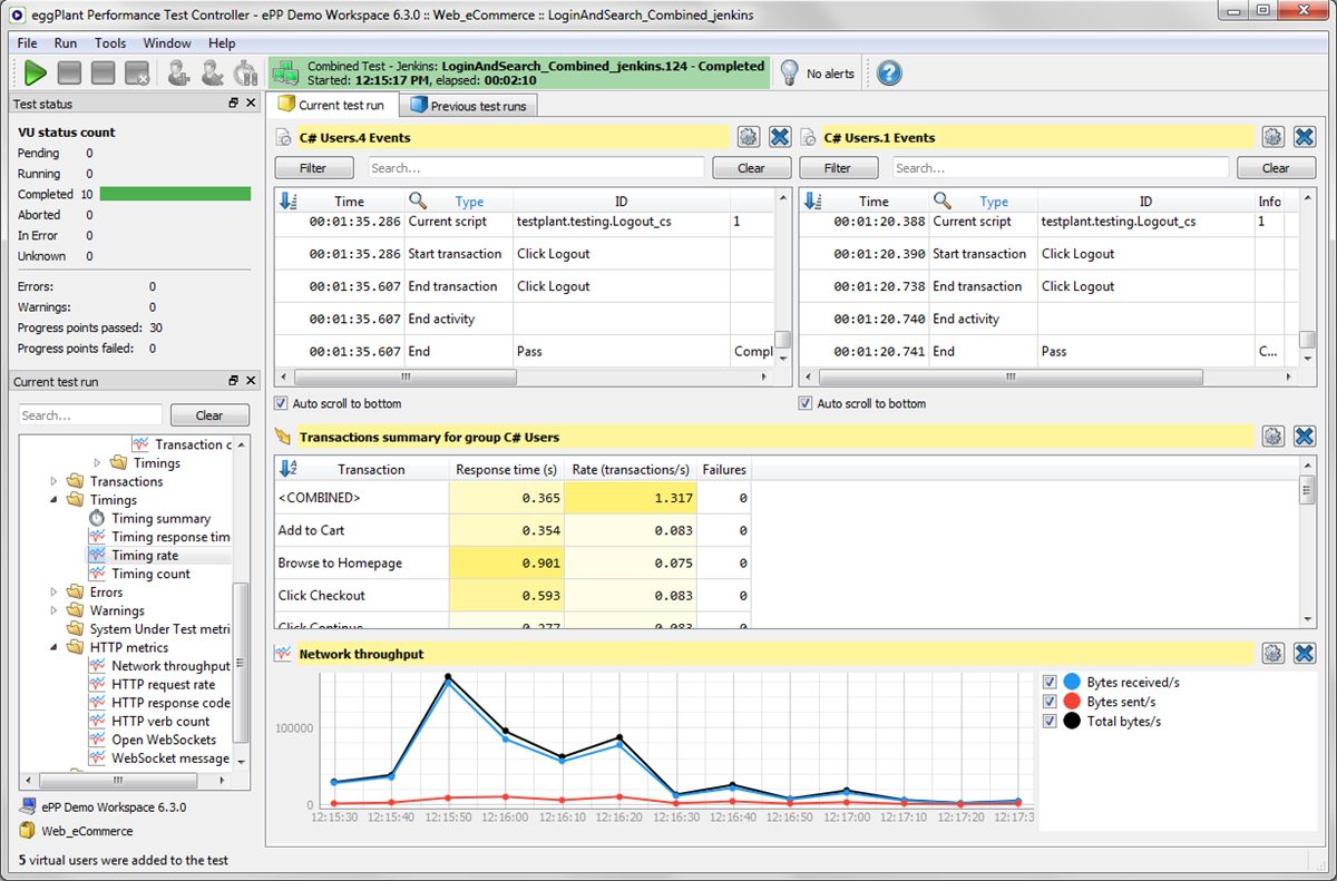 As with other metrics in Test Controller, the information presented in VU event logs is updated in real-time during test execution, and you can review data after test completion as well.