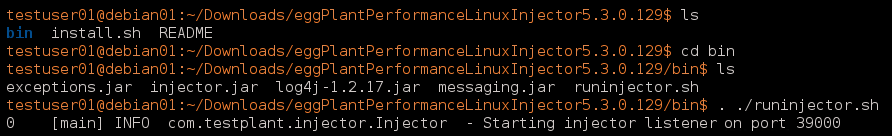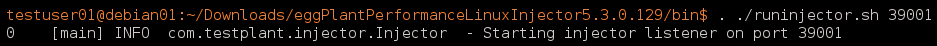 - Specify the port on which you want the injector to listen for connections from the Test Controller machine by passing it as a parameter to runinjector.sh as shown with port 39001 in the sample screen below: